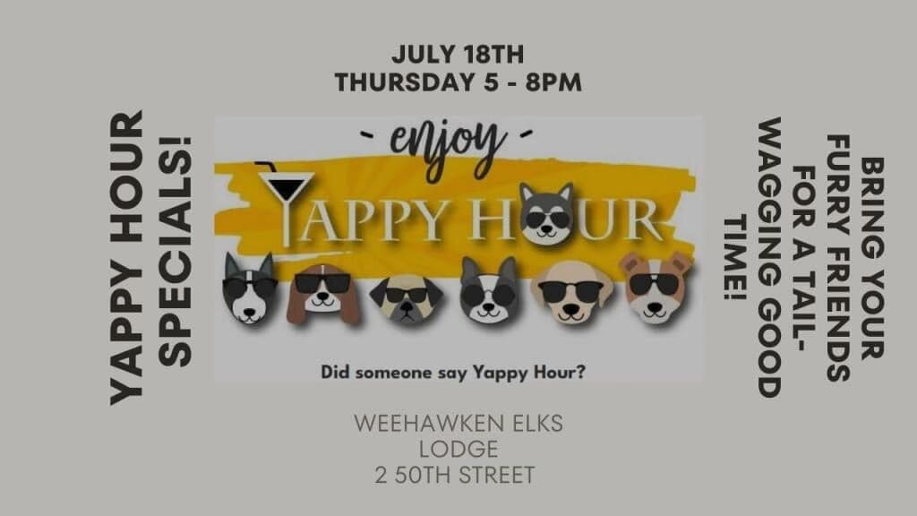 Yappy Hour July 18 At Weehawken Elks