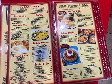 A few readers wrote telling us to try it, and we stopped in. Key highlights include spacious booths, lots of windows, typically massive diner menu, and free parking.