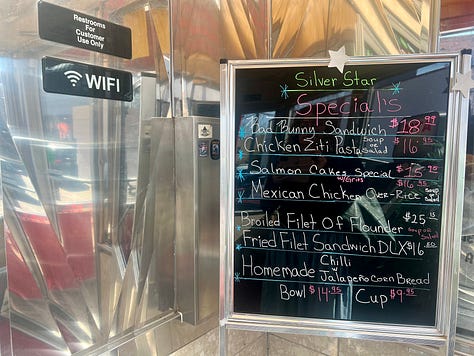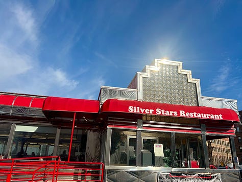 But we’re here to point out a diner just a hop and a skip away that people don’t seem to know about. Previously known as the Four Star Diner, it reopened on Black Friday 2025 as Silver Stars Restaurant & Diner. First established in 1951, it retains it’s diner-y charms.