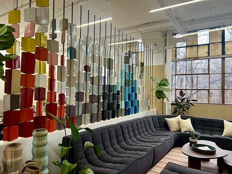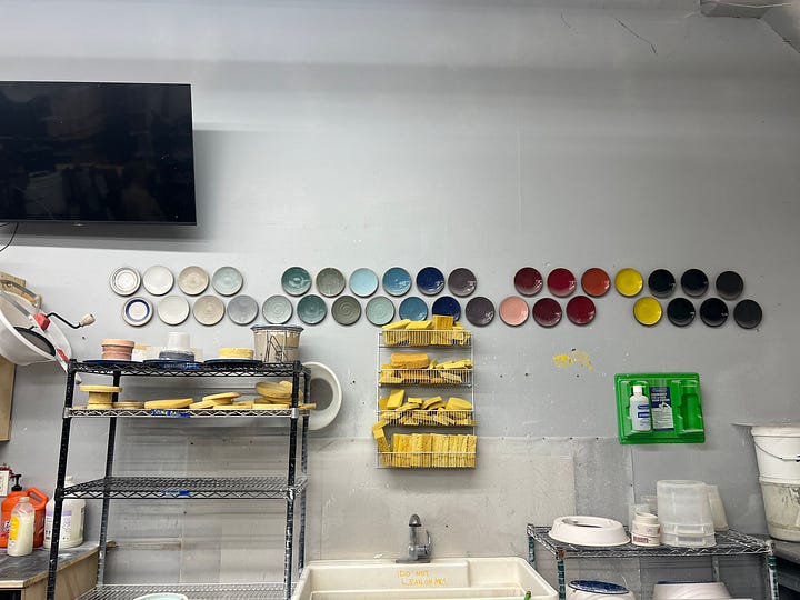 Anyway, I went to their studio for the first time in March with my daughter — and I lucked out. A former co-worker of mine was working there and she kindly gave us a tour. Check it out, and dig that articulated wall showing off their custom glazes: