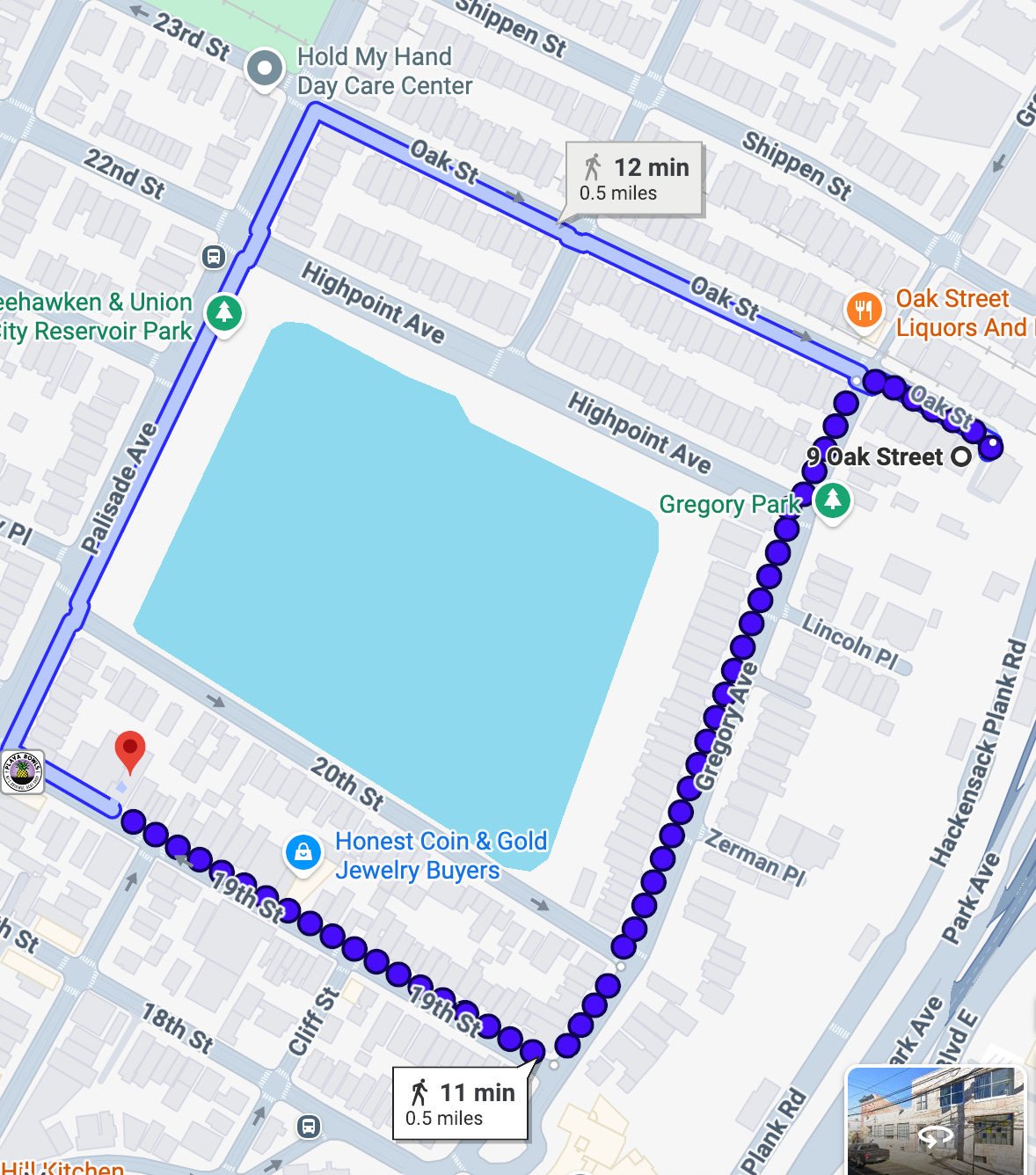 Since Thurston and Houdini knew one another, were both close with Kellar, and Kellar invested in Houdini’s film lab that opened in 1916, it stands to reason that Thurston is the one who introduced Houdini and Kellar to the space that is now Beni coffee. The distance, as seen below, is exactly half a mile. In case you go looking for Thurston’s home, 7 Oak no longer exists, it’s a parking lot in between two buildings, but at the time, it would’ve had the primo view of the skyline.