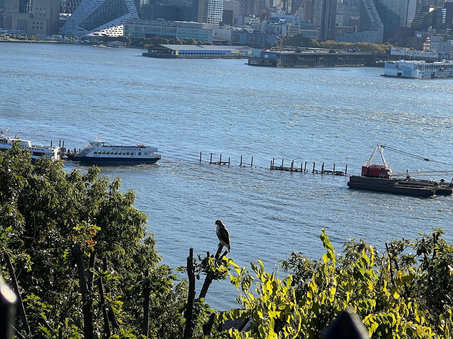 We want Weehawken to have an honorary bird. How about, I dunno, a hawk? Oh look, here’s one now: