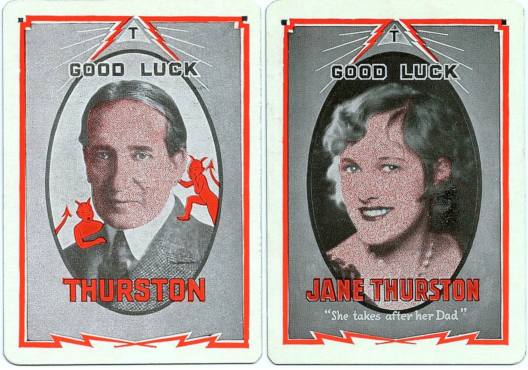 I mean, when Howard was 66 and Jane’s mom was only dead a year, he married his fourth wife, a woman 40 years younger than he was… that probably caused Jane some anguish, no? Also here’s a photo of father and daughter together a few months before Thurston died, captioned “This picture of Thurston, and his daughter Jane Thurston was made several months ago at Charleston W.V. as she nursed him during an illness that followed the bursting of a blood vessel in his head.”